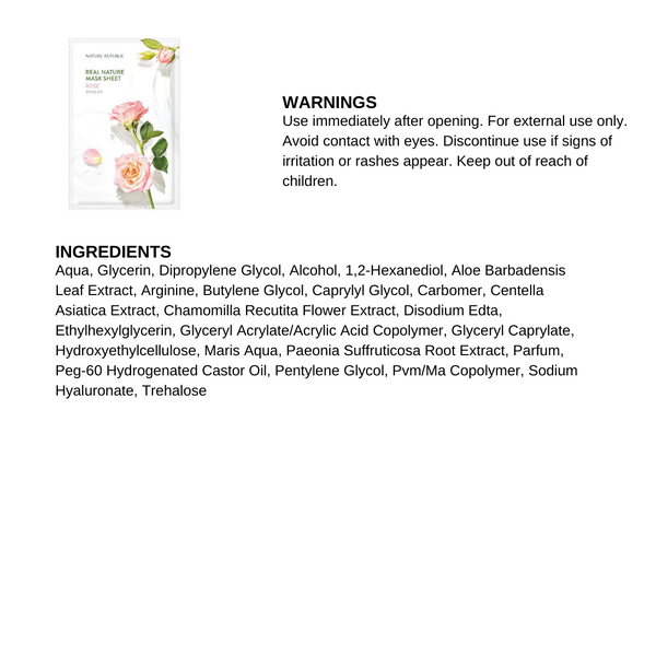 A revitalizing & hydrating facial sheet mask. Formulated with rose extracts to hydrate & revitalize skin. Blended with Glycerin & Sodium Hyaluronate to lock in moisture. Leaves skin soft, smooth, soothed & revived.